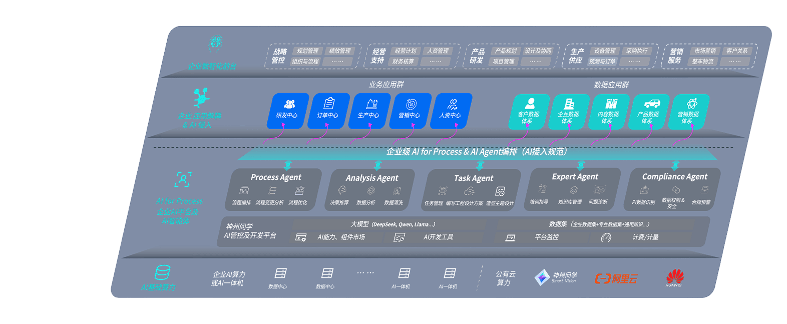 菠菜导航问学智车解决方案是一套基于AI技术的汽车行业智能化系统,,覆盖从底层算力到顶层AI应用的全栈方案。。。。方案由算力层、、模型层和应用层组成:算力层,,方案支持多种一体机配置,,,具备云端灵活部署、、、、多云适配以及动态优化计算资源的能力;模型层,,,,菠菜导航问学平台版提供了企业级AI应用一站式构建与管理平台,,支持基于后训练强化技术的汽车企业专属模型的训练、、、、评测和运营;应用层,,菠菜导航问学DeepSeek版提供包括超级员工、、、、智能招采、、智能营销、、、、智能客服、、、AI for BI等一系列解决方案,,,可助力汽车行业实现数字化转型,,,让管理更智能、、、、响应更敏捷。。。